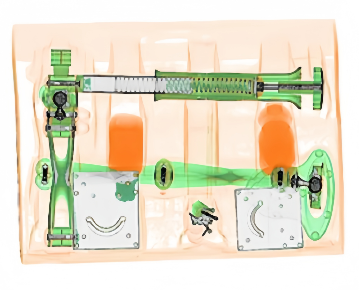 Using Dual-Energy X-ray technology, scanners classify materials by density and atomic number, displaying them in color. A typical laptop shows a distinctive mix:A homogeneous block of explosives, in contrast, would appear largely as a solid mass of organic orange, with a very different internal texture.